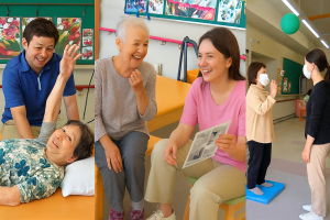 併せて、地域のつながりや社会参加を促し、楽しみや目的を持ってリハビリを実施していくため、近隣の保育所や地域の老人会との交流も行っています。